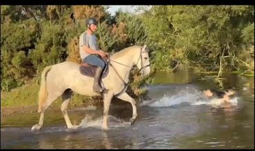 Aubrey was bred and raised at the kennels in Ireland. He is kind and calm, safe and confident. He is remarkably straightforward with a nice jump and a happy demeanor. A fun project for an adult amateur wishing to bring one along, and a good example of the suitability of the Irish Draught/Connemara cross.