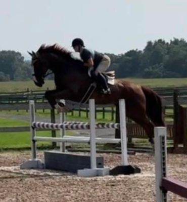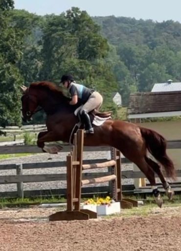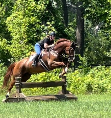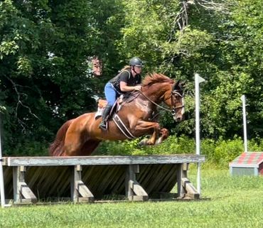 Cormac is a rangy, loose moving horse who carries a slow rhythm, a big stride, and comfortable gaits. Always uphill and agreeable, Cormac is brave, relaxed, and forward going. Easy in the arena, on the trail (either alone or in company), this is an ideal horse for the rider who loves to hunter pace. Cormac is currently being introduced to Eventing at the Novice level, where he is staying brave and relaxed while gaining experience in the sport.