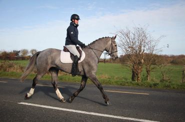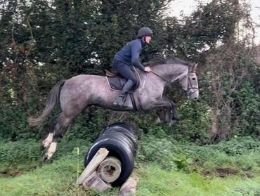 Imported in January 26'. Killian has had 1 owner in Ireland who gave him a patient and proper introduction to his riding life. He has good manners, a lovely temperament, and some experience in the arena, on the trail and out foxhunting. A modern example of an Irish Draught, Killian is attractive, kind, comfortable, safe, and fun to be around.