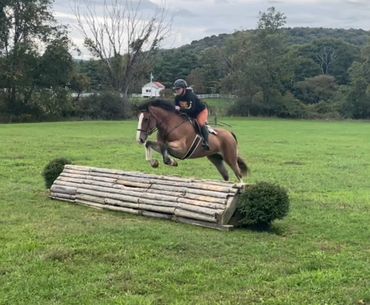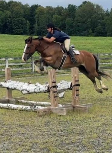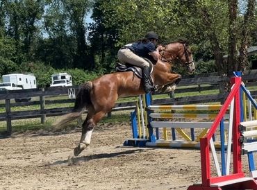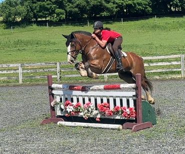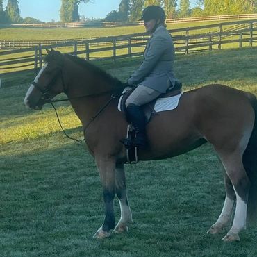 Maggie is intrepid, she will go anywhere alone or in a group, a true point and go horse. She is just as brave when going to fences. A fun compact mare, with endless stamina and enthusiasm. Maggie can be enjoyed in many ways, lessons in the arena, trail riding, as well as fox hunting in which she is particularly adept. Perfect for the showjumper/foxhunter rider who is looking for a 2 in 1 horse. Currently showing locally as well as at rated jumper shows in the .80 and .90m.