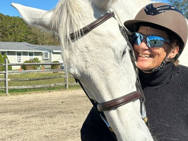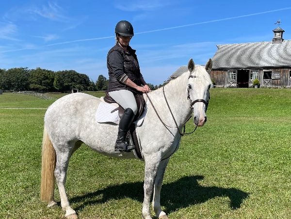 "Basil has been such a wonderful addition to my barn. He has become a “everything” horse for me. When I first bought him, I was living on an island on the Cape, and we had to load him onto a barge that had a makeshift stall and a ramp with no rails. He barely looked at it and walked right up the ramp. I move him around a lot and he’s unflappable. We Trail ride and go out for hacks in the summer where he totally relaxes and loves to go in the water. But he will go from that experience to the hunting scene at the drop of a hat. He’s extraordinarily athletic, but the thing that makes him so special to me is his temperament. He’s such a character. His smart and sweet and just lovely to be around all the time! I’m so lucky to have him!"