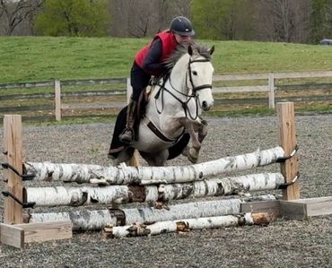 It's unusual for us to have a 9 year old horse here. So few are available that don't have behavioral or soundness problems. Thomas is a special find. He was born on the farm he was purchased from and has spent 5 years teaching riders of every age, even as he himself was learning the ropes. Truly a been there/done that pony, an ideal first or last horse, suitable for a child or an adult. He has the big stride and slower rhythm that I look for as well as the quality jump; all of which make him a standout.